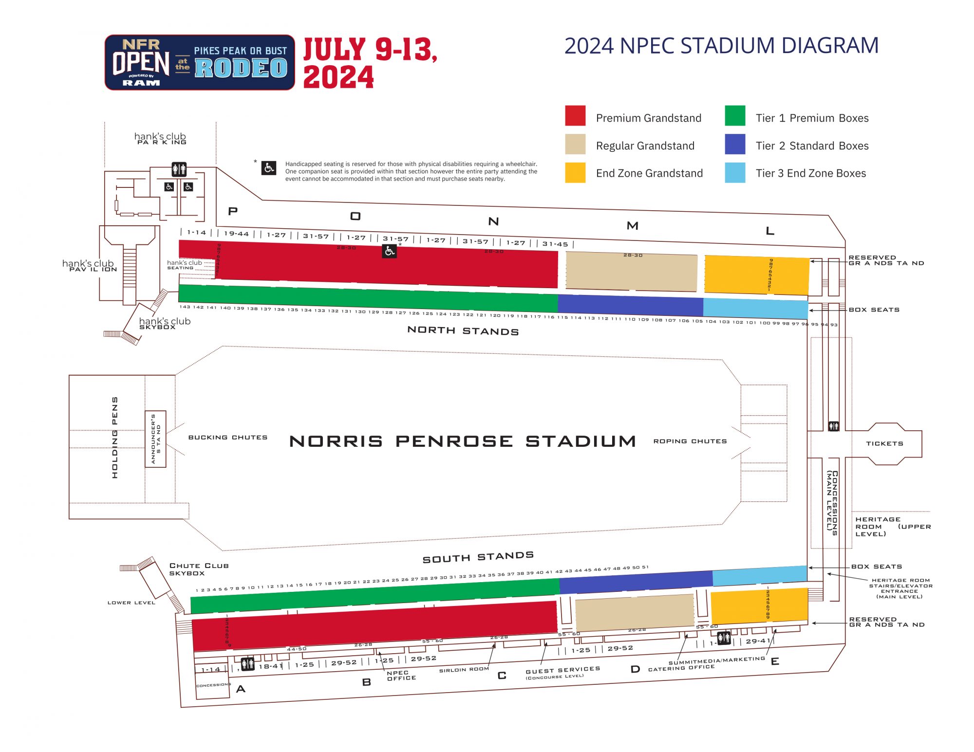 Tickets are available now and are moving quickly! To guarantee your place at this unforgettable event, secure your tickets online directly from PikesPeakorBust.org. Avoid inflated prices from ticket resellers and steer clear of scams – stick to the official website for genuine tickets at the best prices. Before choosing your seats, consult the color-coded stadium diagram provided above. Box seats provide the closest view of the action and are typically in high demand. Grandstand seats also offer excellent views of the excitement. End zone seating, situated in front of the roping chutes, still offers a good vantage point. With performances selling out in 2023 and anticipated to do so again this year, we advise purchasing your tickets as soon as possible.