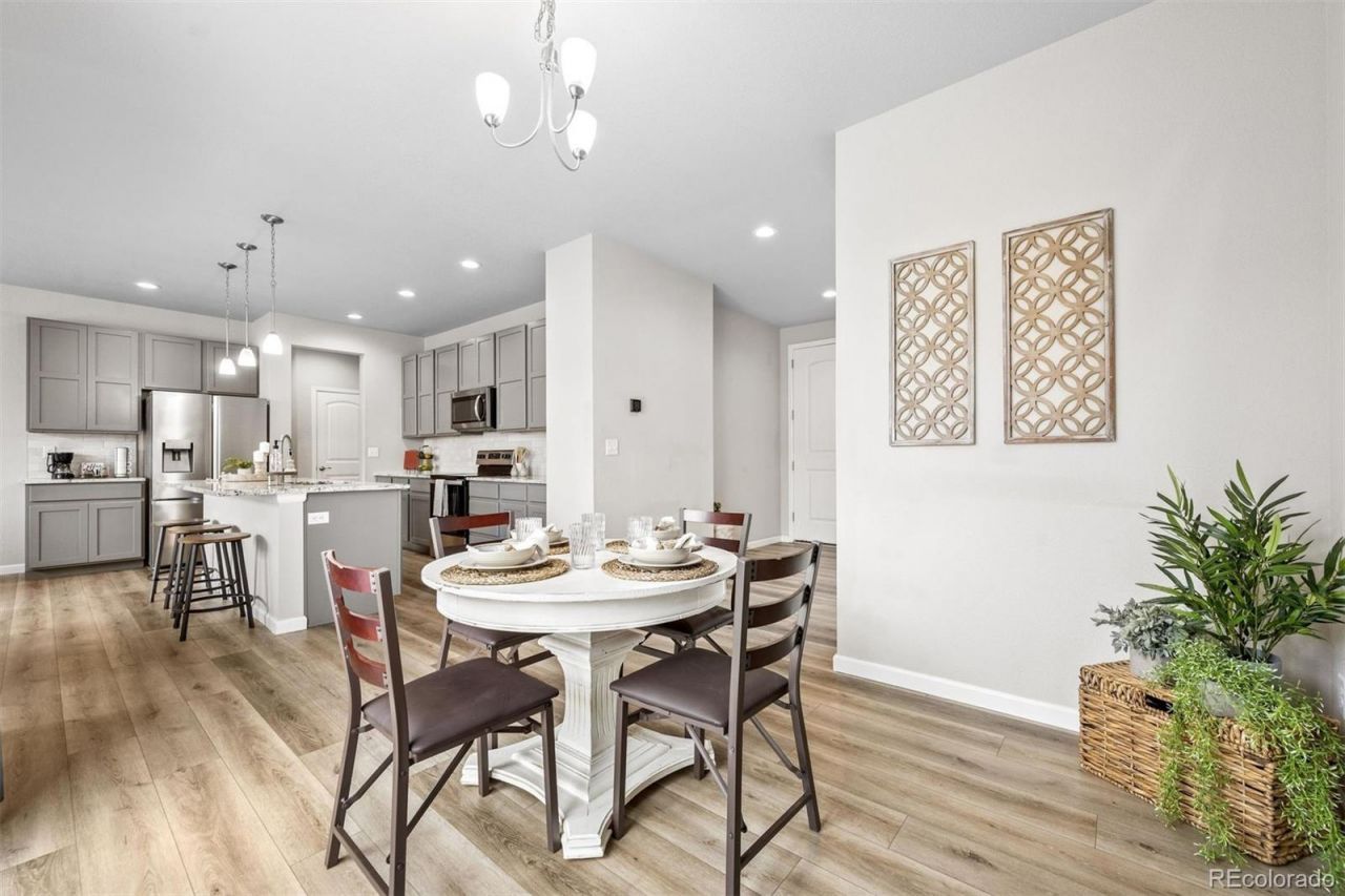 Welcome to this beautifully designed 4-bedroom, 4-bath home offering modern comfort, flexible living, and a bright, open layout. The main floor features a rare bedroom on the main level, perfect for guests, multigenerational living, or a dedicated office. The heart of the home is the spacious kitchen, complete with a large center island, stainless appliances, and seamless flow into the dining and living areas. Upstairs, a generous loft provides a second living space, ideal for a media room, play area, or home workspace. Three additional bedrooms-including a well-appointed primary suite-offer plenty of room for everyone. Outside, enjoy a fully fenced yard with room to relax, play, or entertain. Located in a welcoming neighborhood with convenient access to parks, schools, and commuter routes, this home blends style, function, and everyday livability.