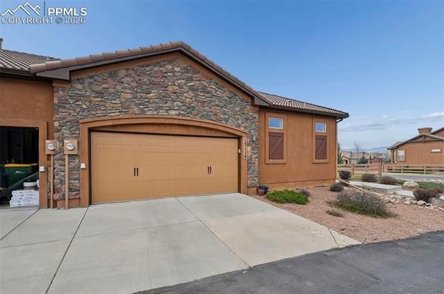 Welcome home to this zero-maintenance ranch-style patio home in Siena Village at Flying Horse offering breathtaking Pikes Peak and Front Range views with a perfect blend of luxury, comfort, and convenience. Designed for easy, carefree living, this home features an open and inviting main level with abundant natural light. The open kitchen is appointed with granite countertops, a center island ideal for entertaining, pantry, and stainless steel KitchenAid appliances including a 5-burner gas range. The adjoining living room offers a cozy gas fireplace with custom mantel and expansive windows that frame the stunning mountain views. Step out from the dining area to the private patio—perfect for enjoying Colorado’s scenic beauty. The main-level primary suite provides a peaceful retreat with an adjoining bath and walk-in closet. A dedicated office offers flexibility for remote work or study. The mudroom/laundry room connects directly to the garage for added functionality. The finished basement expands the living space with a large recreation area, two additional spacious bedrooms, and a full bathroom—ideal for guests or multi-generational living. Additional highlights include newer interior paint throughout and Hunter Douglas window treatments. The HOA maintains the sprinkler system for front, side, and rear landscaping, ensuring true low-maintenance living. Residents of Flying Horse enjoy access to exceptional amenities including two championship 18-hole golf courses, a state-of-the-art fitness center, four pools including a year-round heated lap pool, hot tubs, premier clay tennis courts, pickleball courts, dining, and a full calendar of social events. Experience luxury living in one of Colorado Springs’ most desirable communities.