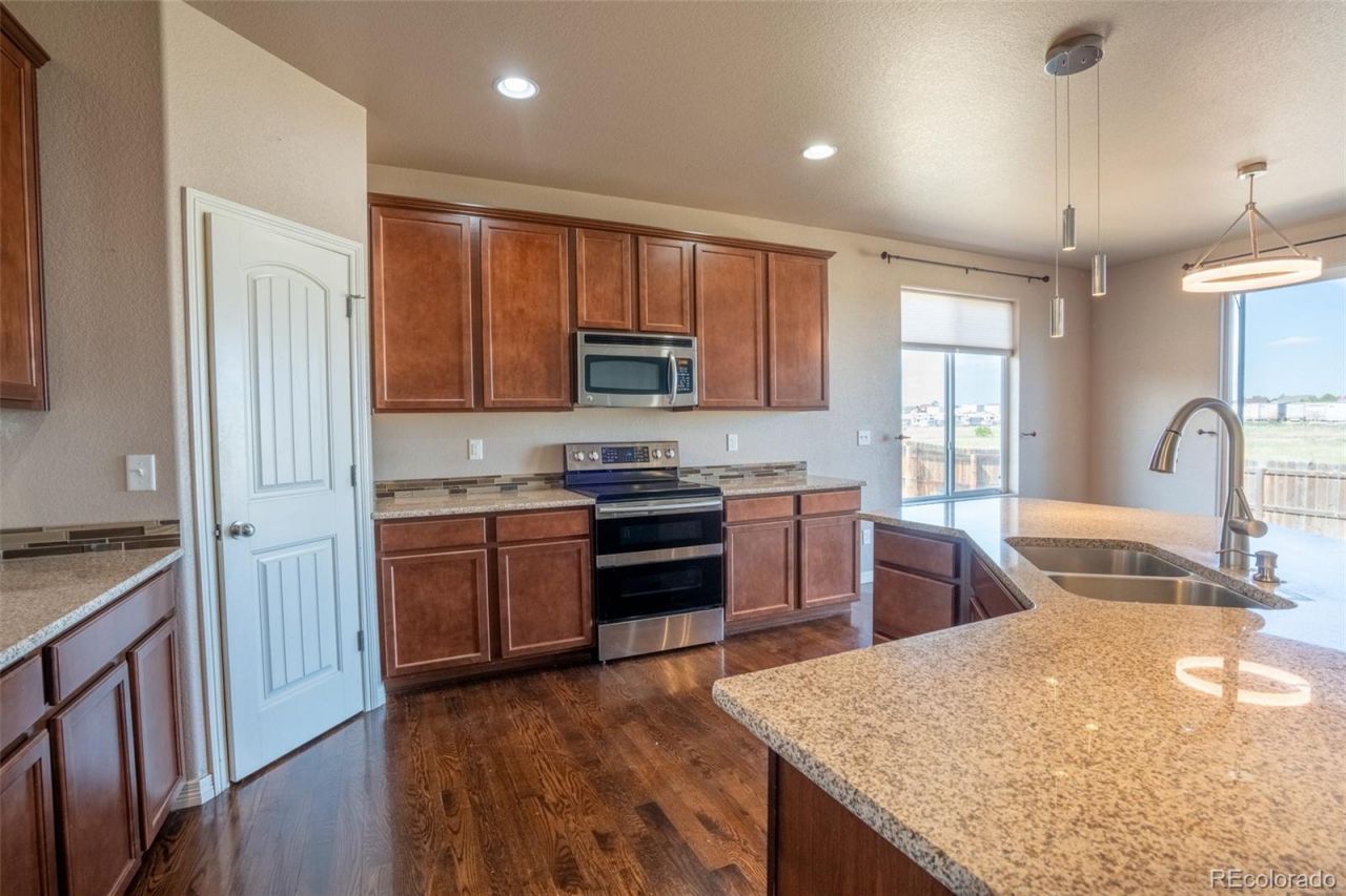This stunning corner-lot home backs to open space and offers the perfect blend of comfort and style. Enjoy a spacious open-concept main floor with soaring ceilings, cozy fireplace, and brand-new carpet in the living room and main-floor master suite. The kitchen is a chefs dream with granite countertops, stainless steel appliances?including a newer fridge?an island, and a walk-in pantry. The luxurious 5-piece master bath adds a touch of spa-like comfort. Ideal for entertaining, the fully fenced backyard features stamped concrete, a pergola, and a fire pit. Real hardwood floors, a newer radon system, and a finished basement with a second living area, two additional bedrooms, and a full bath complete the picture. Located just minutes from Fort Carson, Schriever, and Peterson, this is Colorado living at its best!