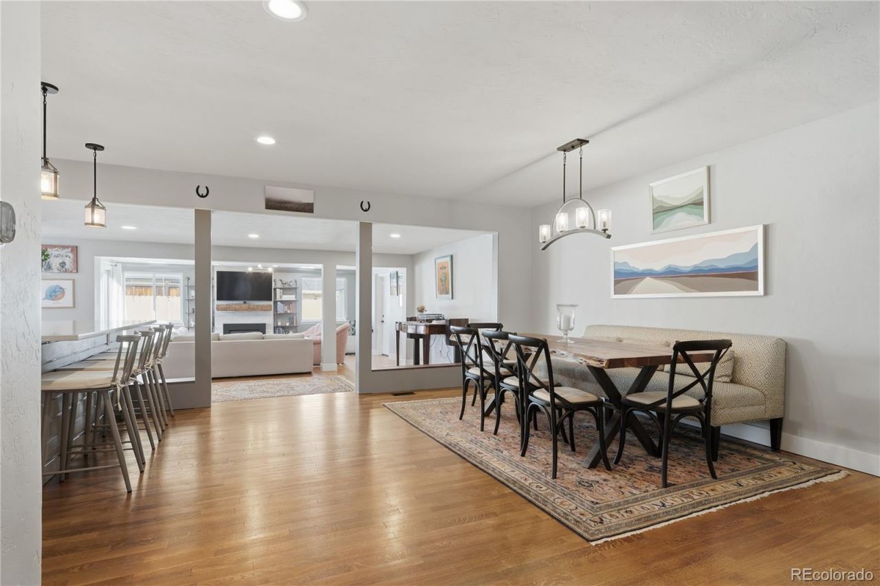 Solidly built in 1953, this 4-bedroom, 2.5-bath brick ranch in Mayfair Park delivers something almost impossible to find at this price: 2,155 square feet all on one floor, with no stairs, no compromises, and a location that puts Lowry Town Center, Boulevard One, and Crestmoor Park trails within easy walking distance.The heart of the home is a beautifully updated kitchen featuring quartz countertops, stainless steel appliances, warm wood accents, and generous white cabinetry ? designed for the way people actually cook and entertain. The living room anchors around a gas fireplace with floor-to-ceiling tile and a built-in bar with wine cooler, the kind of space that feels equally right for a quiet Tuesday night or a dinner party for twelve. The primary suite is genuinely generous ? two walk-in closets, barn doors, and a fully remodeled 5-piece bath with both a soaking tub and walk-in shower. Three additional bedrooms give you real flexibility: home office, guest room, a nursery that grows into a kids room ? whatever your life needs right now. HVAC and mechanical systems give you confidence in the bones. Main-floor laundry, a turfed backyard built for low maintenance, a back patio for summer evenings, and a welcoming front deck round out the package. The 2-car attached garage includes a Level 2 EV charger and serious storage. Mayfair Park is a neighborhood people fight to get into ? quiet streets, mature trees, and a 10-minute walk to some of Denvers best dining, coffee, and retail. Cherry Creek and downtown are both under 15 minutes. This is the one-level home in the right zip code that rarely comes available. Professional photos, video, and 3D tour available.