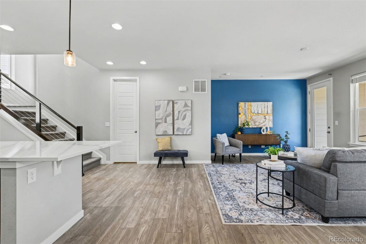 This intelligently designed 3-bedroom 3-bathroom home offers over 2,000 square feet of thoughtfully laid-out living space, combining modern construction with everyday functionality. The welcoming entry opens to a flex room perfect for an office, home gym, game/listening room, guest suite, etc, complemented by an ample hallway closet and convenient access to the 2-car garage. An open-concept main level seamlessly connects the kitchen/dining area, deck, and living area with a powder room?perfect for both entertaining and everyday life. Upstairs, the spacious bedrooms provide privacy and flexibility, including a well-appointed primary suite with ample room to unwind. With three bathrooms, the layout is ideal for guests or shared living, while the newer build means buyers benefit from updated systems, energy efficiency, and low-maintenance living. Amazing views from the over 500 sqft rooftop deck, perfect for BBQs, sunrise coffee, sunset drinks, sunbathing, and more. Situated on a manageable lot, this home offers the perfect balance of space and ease?ideal for buyers who want a newer home without the upkeep of a large property, all within the highly desirable Meadows community. Perfectly positioned in Stewart Park within The Meadows Community, this home offers an unbeatable blend of lifestyle and location. It faces a grassed area, right by guest parking, is tucked away from busier roads, and is a corner-end property. Just moments from The Grange (Taft House) amenities?including the pool, sand volleyball court, and firepit?youll also enjoy easy access to miles of trails, open space, and neighborhood parks. Walk to local dining and community events, with top-rated schools, additional restaurants, shopping, and entertainment just minutes away. Quick access to I-25 makes commuting to Denver or Colorado Springs seamless. See virtual tour and 2D floorplan.