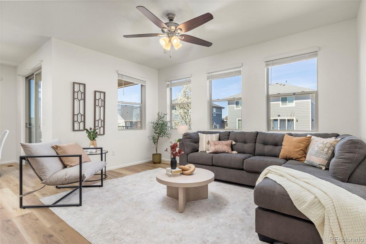 Step inside this almost new home in the vibrant Harmony community of Aurora, where modern comfort and neighborhood connection come together. This homes spacious ranch design features a bright open kitchen with a walk-in pantry, large center island and eat-in space that flows effortlessly into the dining and living areas?perfect for everyday enjoyment and casual entertaining. Recently installed luxury vinyl plank floors and fresh paint throughout add a clean, welcoming feel, making this residence truly move-in ready. A dedicated office space provides the perfect quiet retreat for remote work or creative projects, reflecting todays flexible lifestyle. In addition the secondary bedrooms are spacious with plenty of closet space. The primary bedroom is tucked in the back of the home with a large private bathroom and closet. Step outside to an extended concrete patio, perfect yard size - ideal for outdoor gatherings, quiet mornings with coffee, or summer barbecues with neighbors. Enjoy the benefits of solar without having to worry about assuming a lease or loan.Residents of Harmony enjoy access to excellent community amenities including a neighborhood pool (complete with a zero entry splash pad, lap lanes and an exciting slide), fitness center, parks, walking trails, and an expansive community center that hosts monthly events. The neighborhoods planned design emphasizes open space, community connection, and easy access to shopping, dining, and everyday conveniences along the surrounding corridors. Major routes like I-70 and E-470 provide seamless connectivity to Anschutz Medical Campus, downtown Denver, Denver International Airport, and beyond, while nearby parks and greenways encourage an active lifestyle.This residence offers the best of Aurora living?a welcoming neighborhood, thoughtful updates, and a location that balances convenience with room to grow.