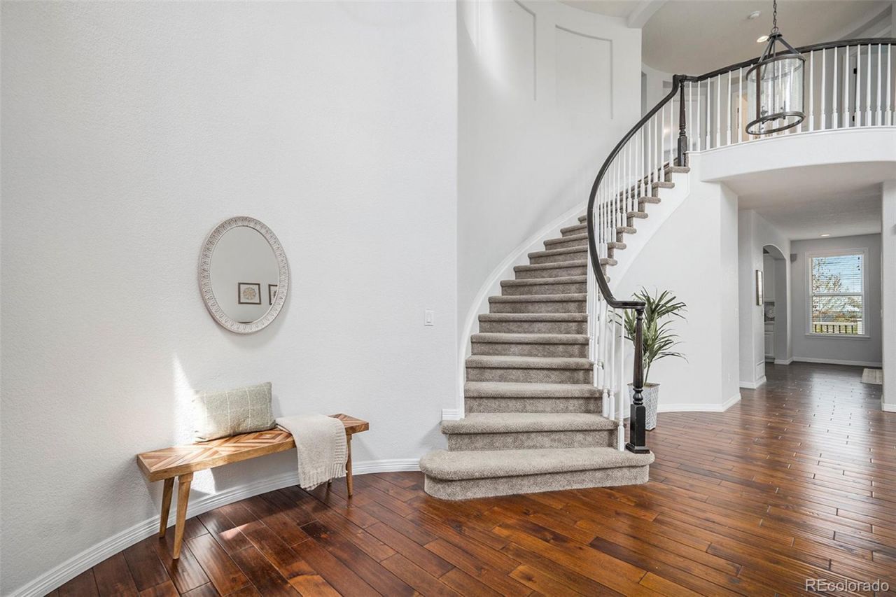 This is it?an exceptional Firelight home with breathtaking mountain and Downtown Denver views, a walk-out basement, 3-car tandem garage, and 5 bedrooms plus a dedicated office.The bright, open-concept main level features quartz countertops, stainless steel appliances, a breakfast nook with built-in bench seating, and direct access to the extended deck?perfect for enjoying the views. Formal living and dining rooms with 18-foot vaulted ceilings, a dedicated office, and a cozy family room with fireplace complete the space.Upstairs, the spacious primary suite offers two walk-in closets, a five-piece bathroom, and a private balcony with stunning panoramic views. Three additional bedrooms, a full bathroom, and a built-in loft provide plenty of room for everyone.The fully finished walk-out basement includes a large family room, bedroom, full bathroom, wet bar, and two versatile bonus rooms?ideal for guests, a gym, or a home theater. Step outside to the patio and enjoy the newly landscaped backyard with fresh sod and mulch.Hardwood flooring throughout, with newer Kahrs European-imported hardwood installed in 2024 on the upper and basement levels. Fresh interior paint and newer exterior paint add to the move-in-ready appeal.Walk to Red-Tail Park and enjoy miles of trails, plus access to four community recreation centers.1% lender credit available for qualified buyers.Exceptional views, space, and location?this is a rare opportunity you dont want to miss.