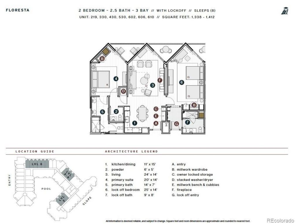 Perched on the top floor, Beckwith Residence 602 is a premier residence within The Beckwiths exclusive ski-in, ski-out collection of 49 to-be-built residences. With an exterior northeast-facing orientation, this 1,412-square-foot Floresta floor plan captures a wide panorama of sky, trail, and alpine beauty. This thoughtfully designed residence features two bedrooms, including a spacious primary suite, a private lockoff, and an open-concept kitchen, living, and dining area that seamlessly blends indoor comfort with outdoor connection. Inside, discover mountain-modern interiors bathed in soft earthy neutrals, while whimsical design details and unexpected pops of color bring a distinctive sense of place and playful sophistication. The gourmet kitchen is outfitted with natural stone countertops, high-end appliances, and generous space for culinary exploration and entertaining. A custom millwork bench and cubbies at the entry make gear organization effortless. The living area features wide-plank wood flooring, a sleek electric fireplace, and easy flow to the balcony for seamless indoor-outdoor living. The primary suite is a private sanctuary with a millwork wardrobe, separate balcony, and a spa -inspired en-suite bath featuring Kohler fixtures, and luxurious finishes. The lockoff suite provides yet another peaceful escape, with mountain -inspired textures, en-suite bath, and elevated privacy. Additional conveniences include a stylish powder room, in-unit laundry with stacked washer/dryer, and secure owners gear storage. The Beckwith is the only ski-in, ski-out resort in the heart of Crested Buttes base area, with world-class amenities including a four-star, community-inspired hotel, seamless ski valet, luxurious spa, adventure concierge, and private mountain & social community, Club Beck. A multi-phased reimaging of Elevation Hotel & Spa will transform almost every space at the resort, with residences anticipated for completion in the Winter 26-27 ski season.