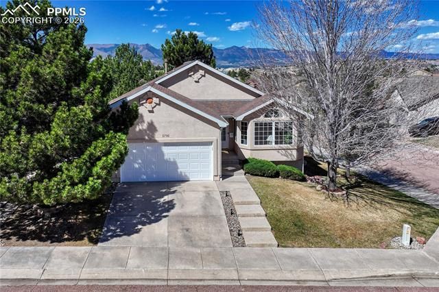 Enjoy low-maintenance main-level living paired with breathtaking views of Pikes Peak and the Front Range in this spacious 3,780 sq ft walk-out ranch featuring 5 bedrooms, 3 bathrooms, a 2-car garage, and a fully finished basement. Beautiful Brazilian cherry hardwood floors welcome guests from the entry into the kitchen, complete with slab granite countertops, 2 pantry spaces and large peninsula…refrigerator included! The great room offers a vaulted ceiling, gas fireplace, and walk-out access to a composite deck with a natural gas stub— a perfect place to enjoy the stunning mountain views. The living and dining areas both feature bay windows and vaulted ceilings creating a bright and open feel. The primary suite boasts a vaulted ceiling, walk-in closet, and walk-out to the covered deck. The adjoining 5-piece bath features granite countertops and a soaking tub. Two additional main-level bedrooms, each with vaulted ceilings and ceiling fans, a full bath and a well-equipped laundry room with cabinetry, sink, and garage access complete the main floor. The finished walk-out basement features a large 29ft x 20ft gathering space with wet bar and direct outdoor access. An adjacent 24ft x 16ft flex space offers endless possibilities for a media room, home gym, or hobby area. The basement also includes two additional bedrooms (one with a walk-in closet), a ¾ bath, and ample storage. Ideal for multi-family living! Additional highlights include central A/C, central vacuum, mature trees, and a desirable corner lot location in a cul-de-sac. HOA dues cover mowing, exterior water, trash, snow removal, pruning/fertilizing, and access to the Norwood Recreation Center with pool, tennis, and pickleball courts. Conveniently located with quick access to I-25 (10 minutes) and the Powers Corridor (7 minutes), makes shopping, dining, schools and entertainment easily accessible.