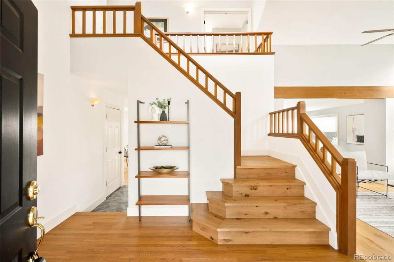 This updated Centennial home captures the charm of Old Town Louisville, just moments from Boulder and outdoor recreation. A striking two-story entry with a statement staircase welcomes residents inside, where vaulted ceilings and abundant natural light create an airy, inviting atmosphere. The main living area is anchored by a tiled fireplace, flowing seamlessly into a bright dining space. The newly refreshed kitchen shines with new cabinetry, countertops, and stainless steel appliances. Sliding glass doors open to a covered deck ? ideal for indoor-outdoor living. Upstairs, all bedrooms are thoughtfully situated, including a spacious primary suite with a serene five-piece bath. The walkout basement offers flexible, partially finished space ready for personalization. A dedicated laundry room adds daily ease. Outdoors, a large, private yard with a patio and raised garden beds provides a peaceful retreat. With new flooring updates and a prime location, this home is a standout opportunity.